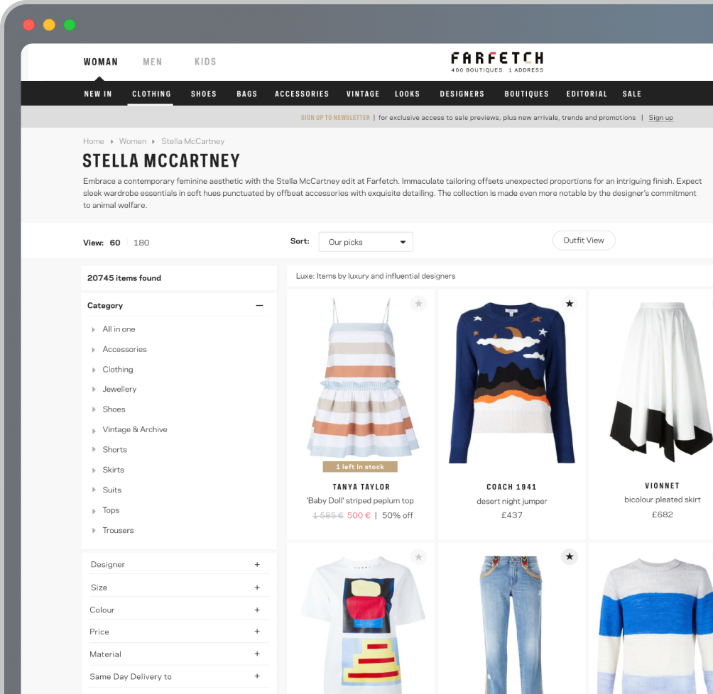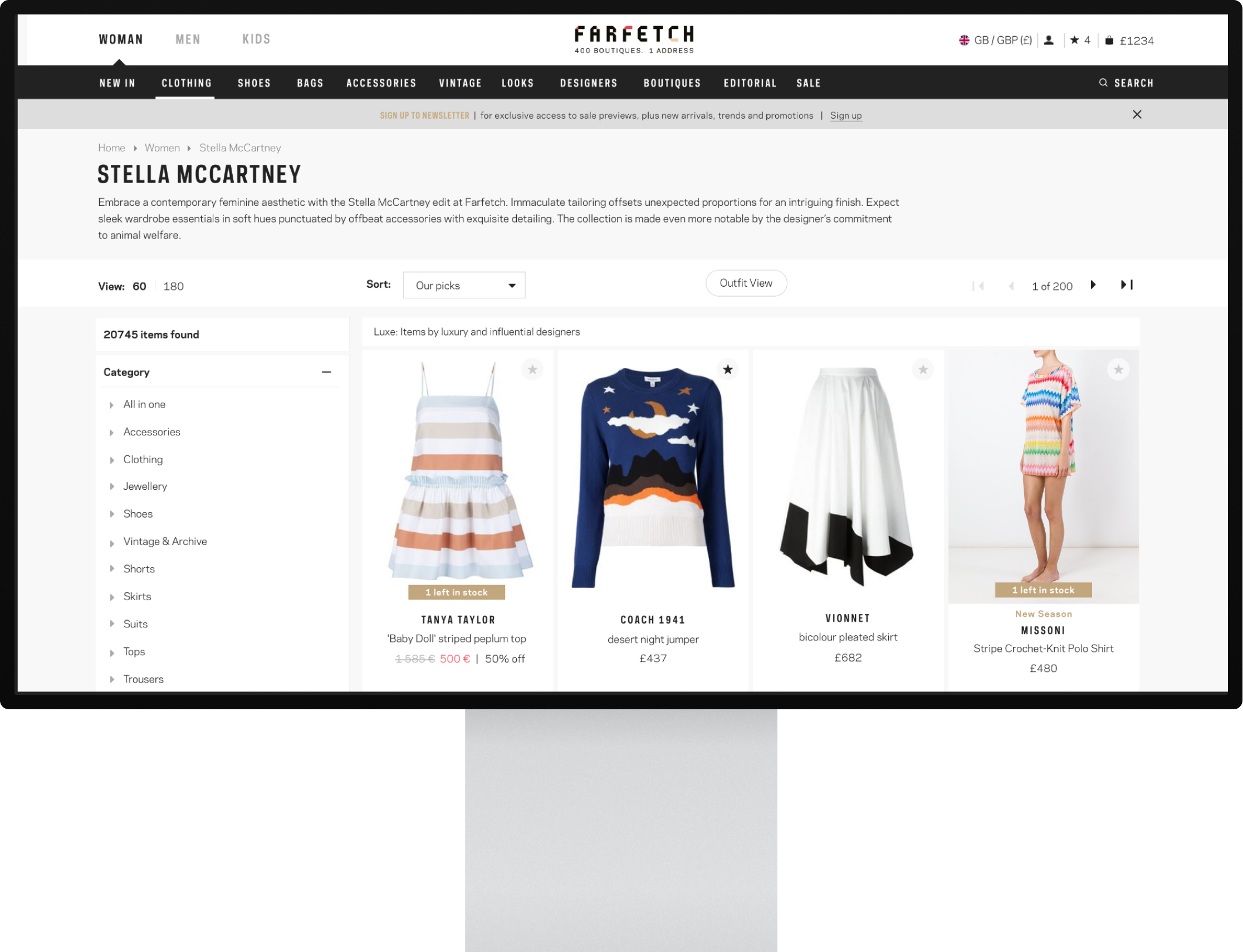 At Farfetch, I worked on the redesign of the core e-commerce experience for a global luxury marketplace used by millions of customers worldwide.