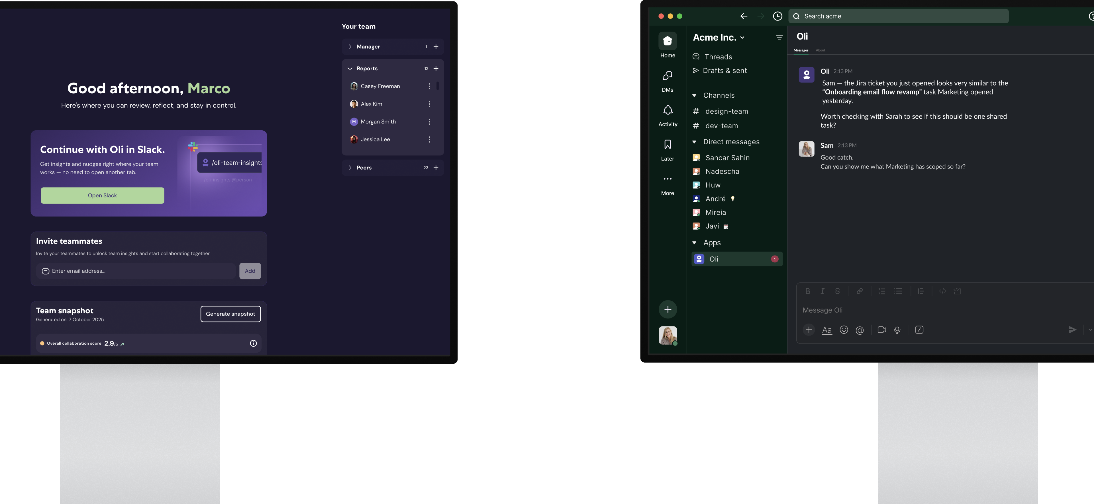 Designed how Oli shows up directly in Slack — as part of everyday work.