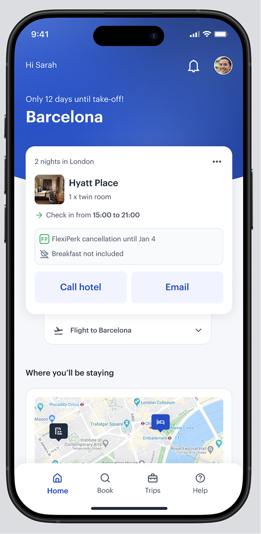 It treated travel as a list of bookings, not as a journey. Travellers had to jump between screens and tools, especially during time-critical moments.