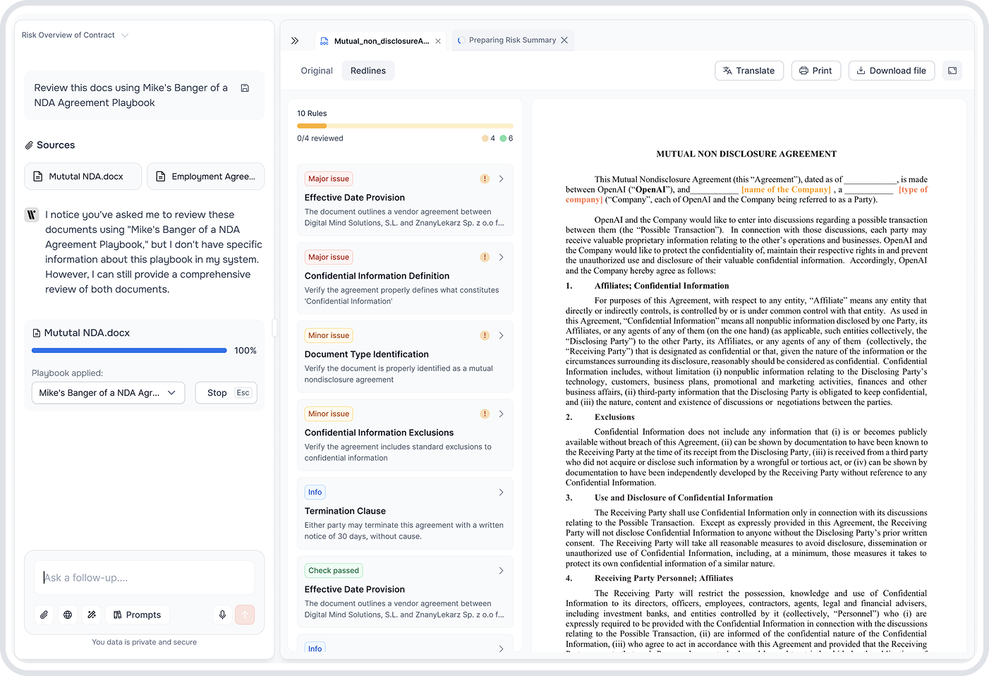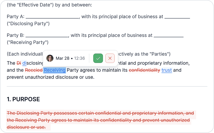 From that point on, the document behaves like any other legal document — editable, reviewable, and easy to refine with or without AI.