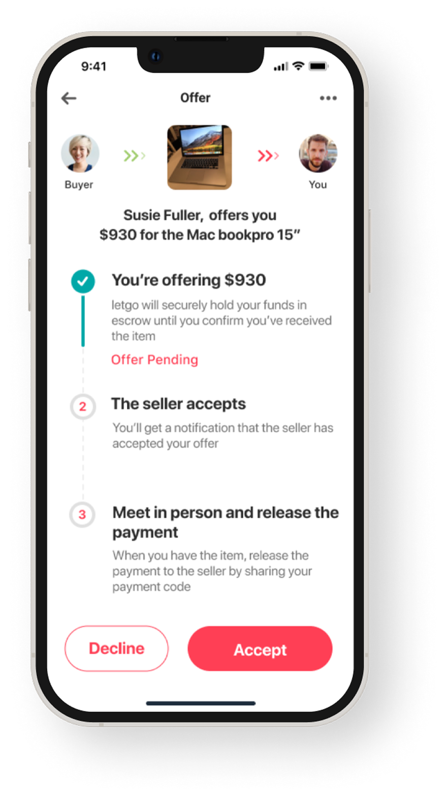 With the insights from user interviews, we realize the users wanted a faster way to secure their items by making an offer. Once the sale is agreed the seller will share the shipping info in your dedicated item chat, if buyer decided to pick up your item, your seller will share the next steps.