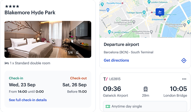 Enable check-in, tickets, directions, and support directly in context, reducing friction and reliance on web or support channels.
