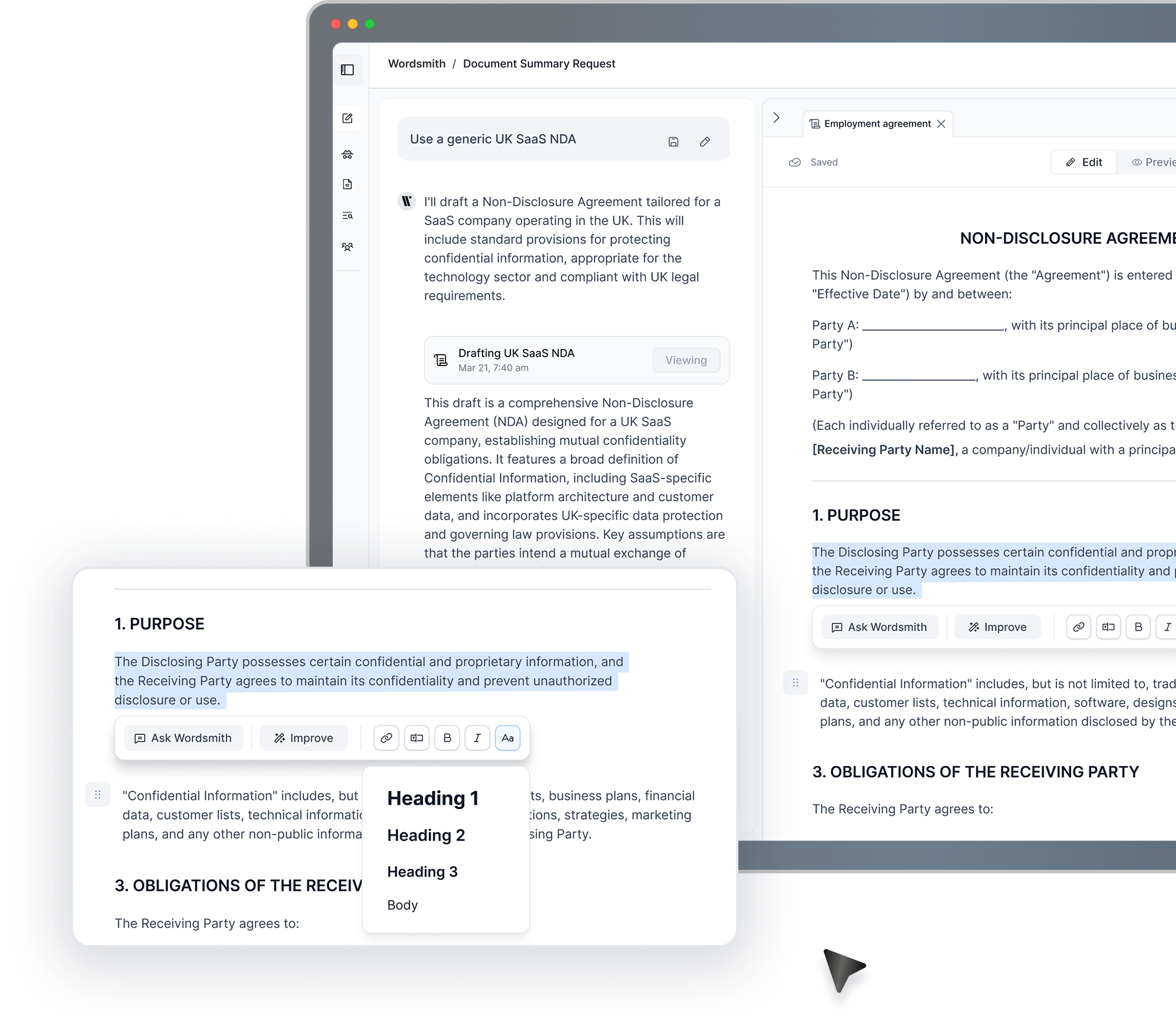 Founding designer. I worked closely with the CEO to shape the product from zero - from early ideas to real workflows lawyers use every day.