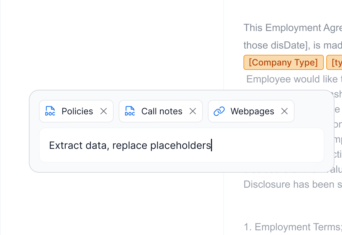 Lawyers can generate emails, cover letters, or supporting documents directly from the contract they're working on — without switching tools or copying content.